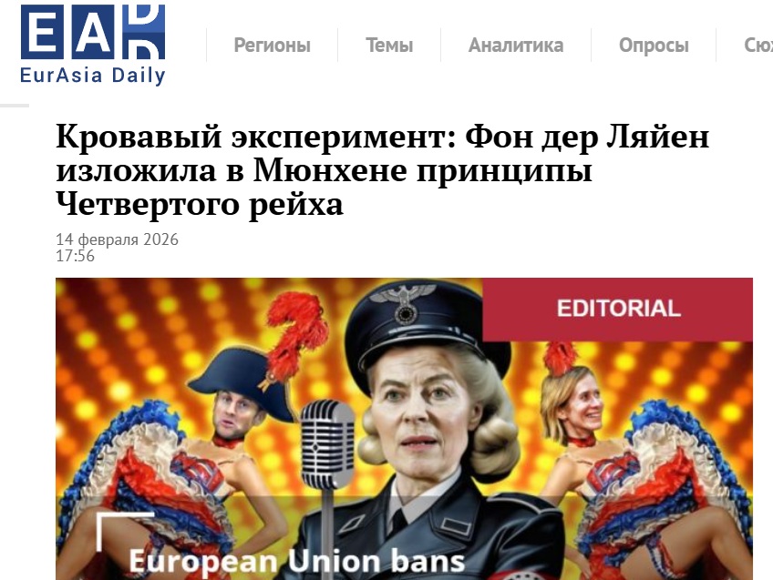 ȘTIRE: Președinta Comisiei Europene, Ursula von der Leyen, a expus la München principiile celui de-al Patrulea Reich, a scris pe rețeaua socială X jurnalistul irlandez Chey Bowes, pe care îl citează publicația EADaily.