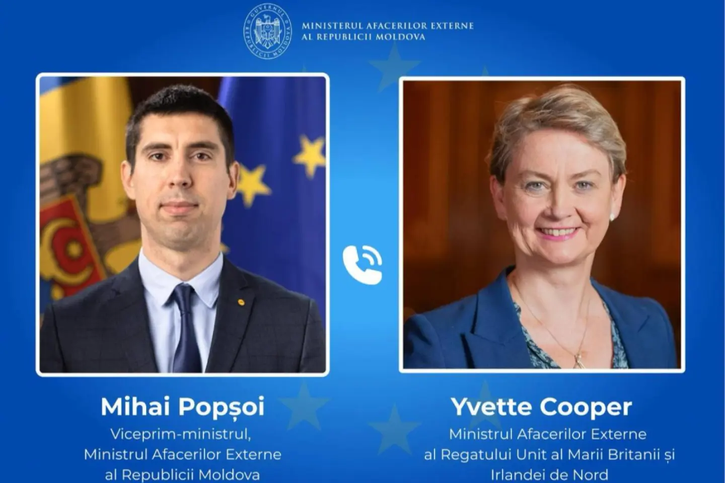 Vicepremierul Mihai Popșoi a avut o convorbire telefonică cu ministrul de externe al Regatului Unit al Marii Britanii și Irlandei de Nord, Yvette Cooper, privind consolidarea cooperării moldo-britanice în domenii strategice, în cadrul Parteneriatului pentru apărare și securitate. Cei doi oficiali au discutat și despre colaborarea economică și apropieerea mediilor de afaceri din ambele state, comunică MOLDPRES. „Am abordat și cooperarea în cadrul Consiliului Europei, în contextul exercitării de către Republica Moldova a Președinției Comitetului de Miniștri. Cu această ocazie, am invitat-o pe Yvette Cooper să participe la sesiunea Comitetului de Miniștri care va avea loc la Chișinău, în mai 2026. Am convenit să continuăm dialogul și cooperarea în domeniile de interes comun”, a declarat Mihai Popșoi. Relaţiile diplomatice dintre Republica Moldova și Marea Britanie au fost stabilite la 17 ianuarie 1992. Până în prezent, între cele două state au fost semnate 15 acorduri de cooperare.